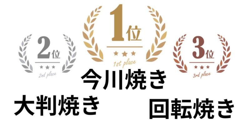 今回の調査で際立ったのは、東日本=今川焼き・大判焼き、西日本=回転焼き・大判焼きという大きな地域差です。